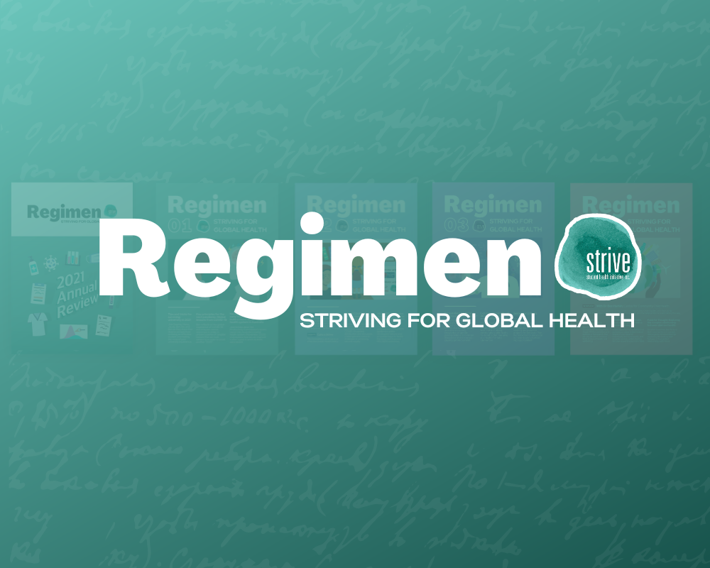 Regimen: Striving for Global Health is a periodical publication created by Strive Student Health Initiative that aims to inspire students to make a social impact while empowering them with the knowledge and awareness to contribute positively to global public health. Each edition will feature student articles and interviews written and conducted by the Strive Publications team.